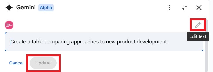 您也可以點選鉛筆圖示,調整提示語後按「Update 更新」即可重新產出回答。