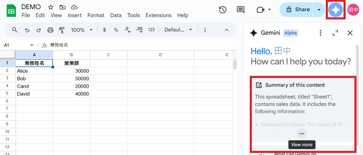 STEP 2. 再到 Google Sheets 中開啟 Gemini